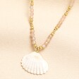 Dusky Pink Beaded Shell Pendant Necklace In Gold