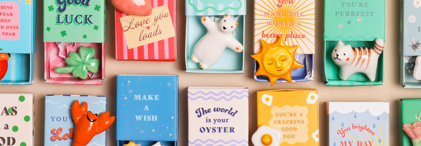 This blog explores the charm and meaning behind our bestselling ceramic matchbox tokens. Thoughtfully designed and made of ceramic, each tiny matchbox opens to reveal a keepsake token or miniature symbol that pairs with the personal and heartfelt sentiment written onto the matchboxes. These pieces are designed to be treasured, whether displayed as part of the recipient's home décor or kept close as a daily reminder. In the following guide, we take a closer look at the collection, sentiment, and the moments they suit best.
