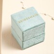 Covered in rich green velvet, this jewellery box features three soft ring rolls inside, perfect for securing earrings or small keepsakes. The word 'Bridesmaid' is stamped in shiny gold foil across the top of the lid for a simple yet stunning finish. The compact size makes it easy to slip into a bag or gift box.