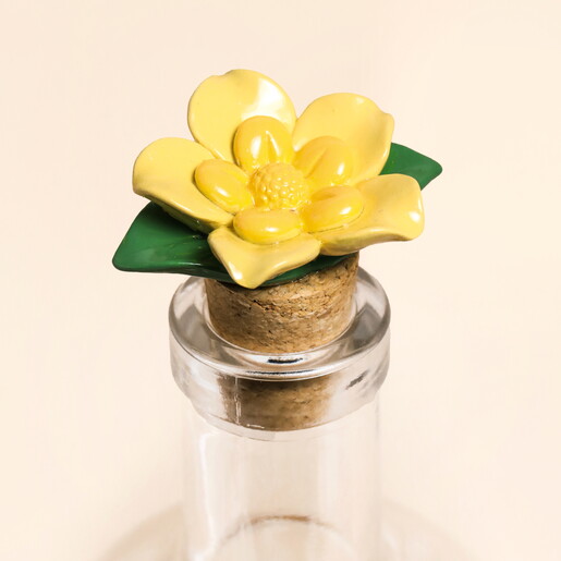 Made of yellow resin with a glossy glaze, this stunning stopper features an open flower design complete with gilded petals and green leaves. Ready to be pushed into the neck of your bottle to keep your favourite drink fresher for longer, this pretty piece is ideal for adding to your kitchen or barware collection and makes a sweet token gift for a wine-loving friend.