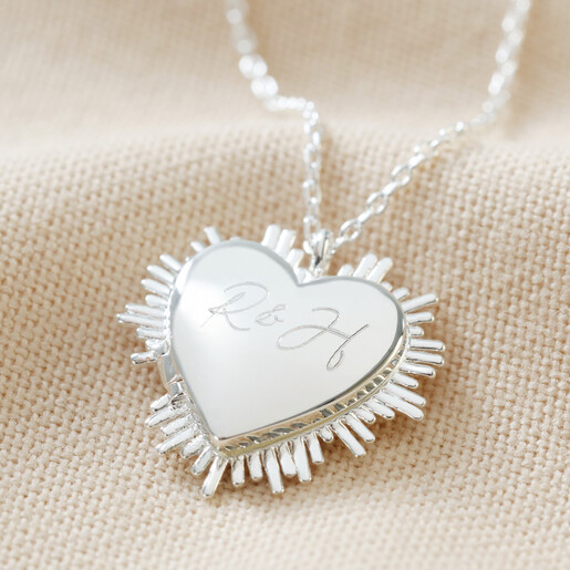 Heart Sunbeam Locket Necklace in Silver