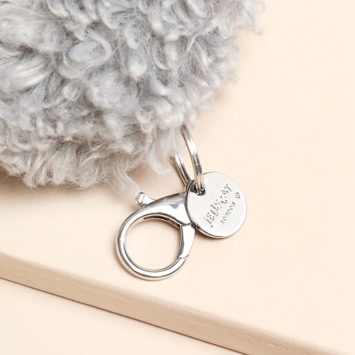 With a large stitched frown and dangling cord-like legs, this charming cloud clips onto your bag with an oversized silver claw. Finished with a Jellycat disc, its soft grey fluff adds a charming texture to the accessory.