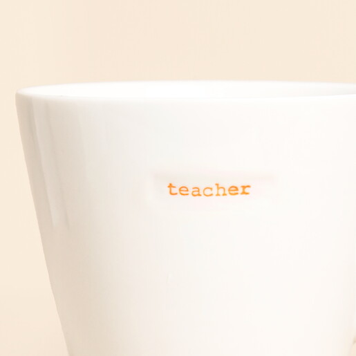 Made of white porcelain with a simple glaze, this sweet and simple tea cup features 'teacher' wording in a orange typewriter font, giving your wonderful teacher a coffee mug that's completely unique to them.