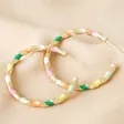 Made from 14ct gold plated brass, these hoops feature a unique twisted rope design, with an intermittent glossy enamel infill. Each enamel twist has a different pop of bright pastel colour in pink, green, orange, yellow, or white.
