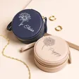Personalised Mini Round Birth Flower Travel Jewellery Case with Gold Zip