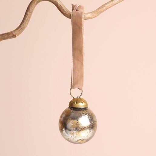 This mottled gold and silver bauble is the perfect way to add some winter warmth to your home.