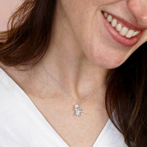 Embrace seaside themes with this retro turtle charm necklace in silver.